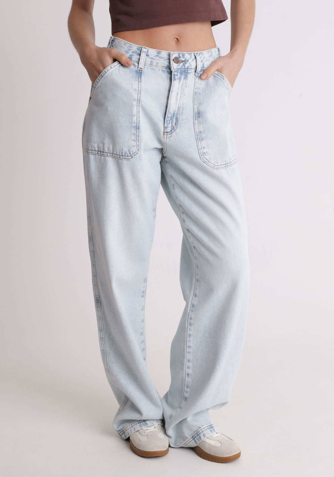 Calça jeans bolso carpinteiro lavanderia clara