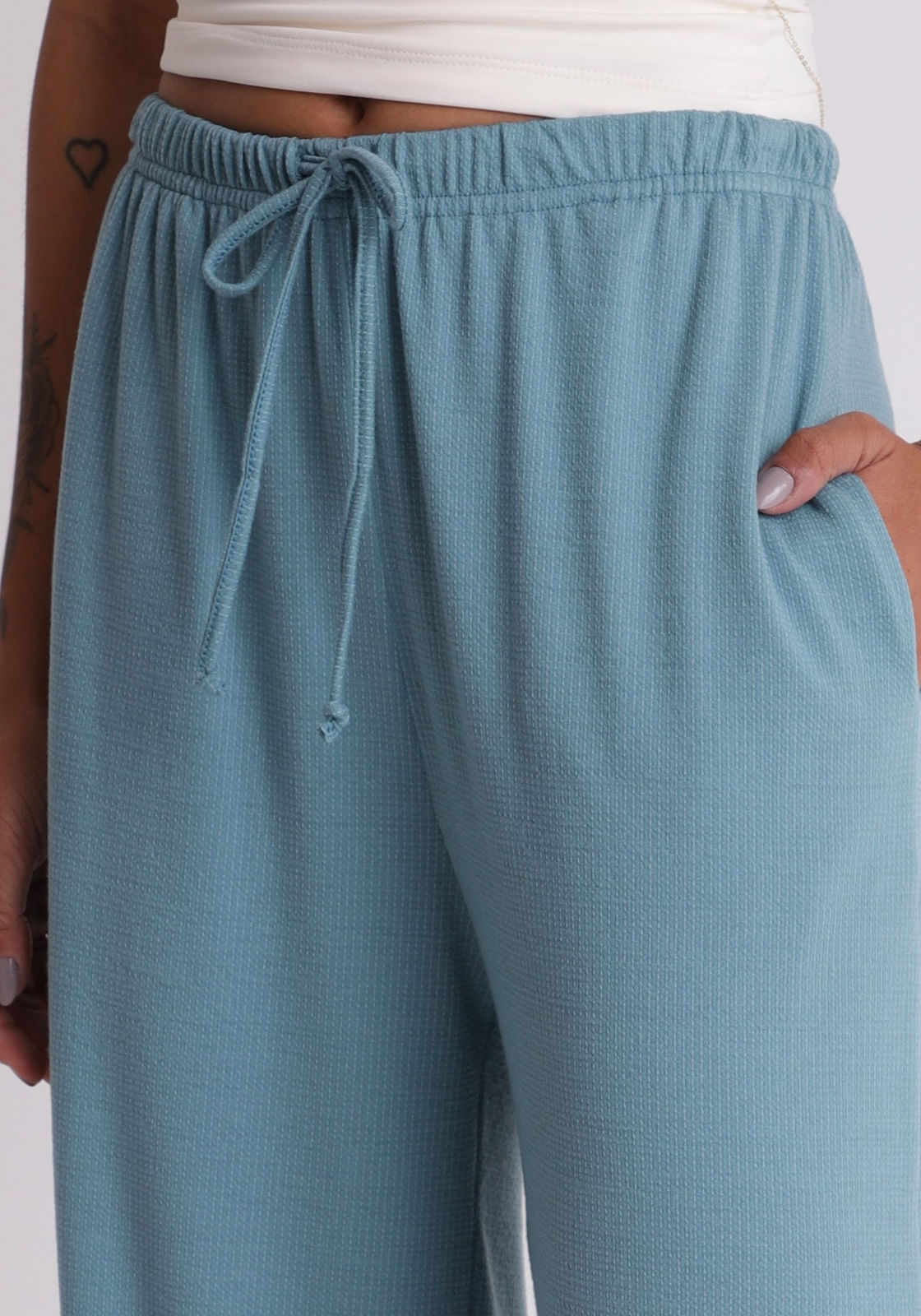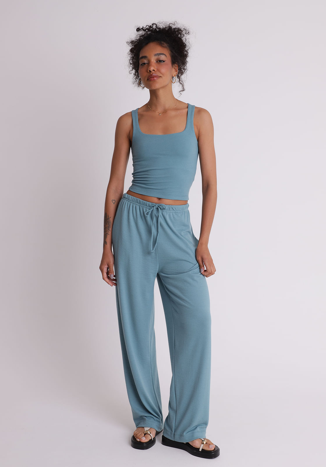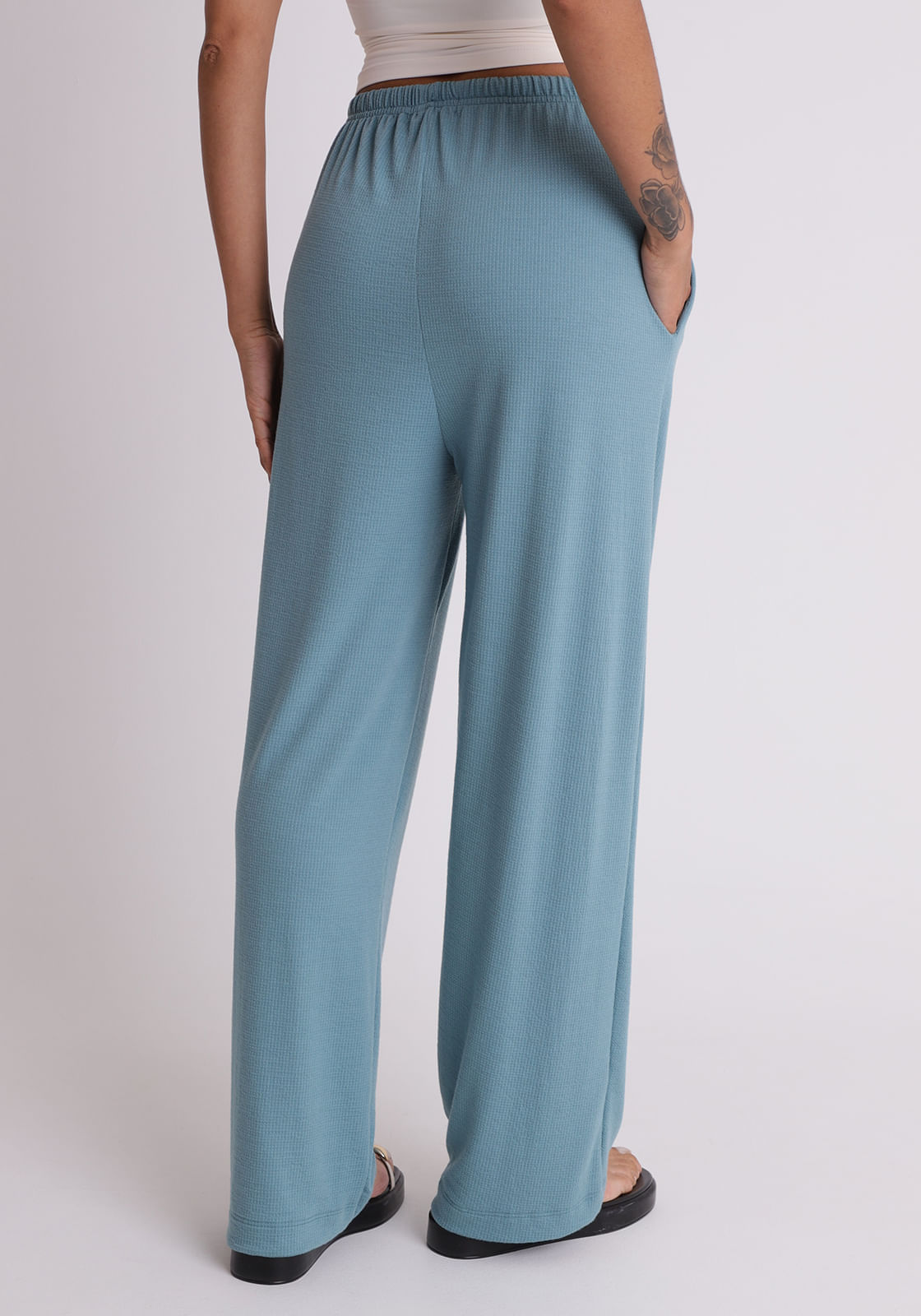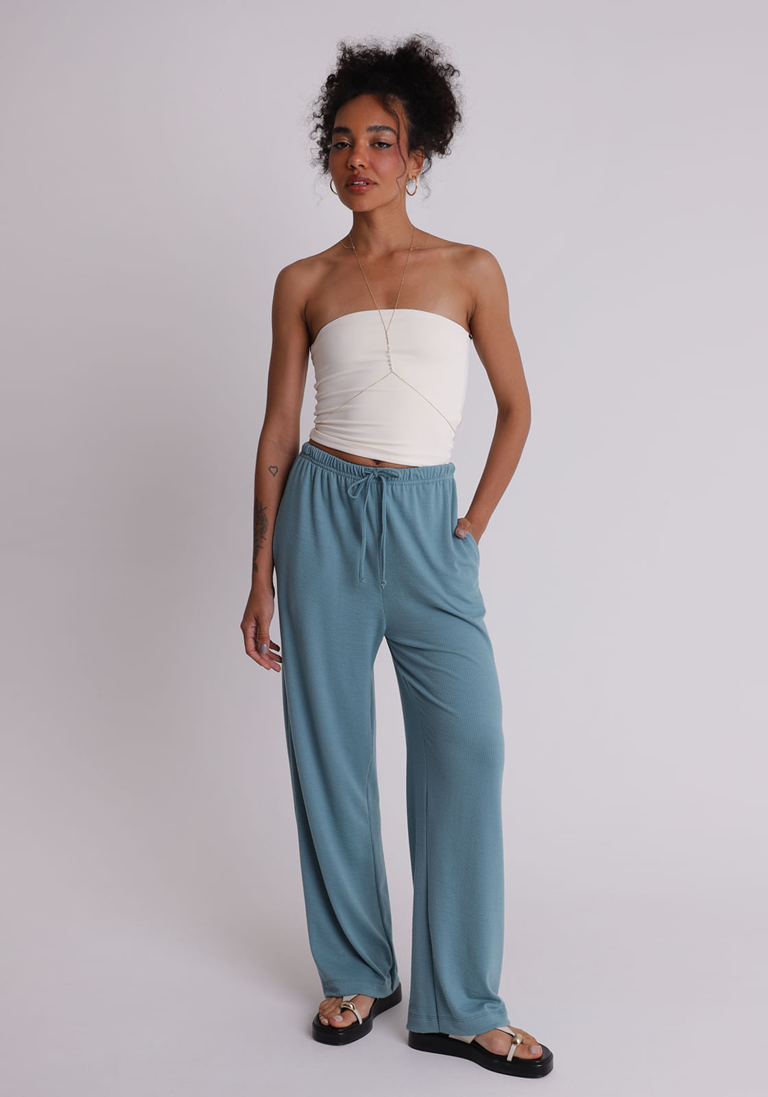 A calça wide leg em malha com cós elástico é sinônimo de conforto com muito estilo.