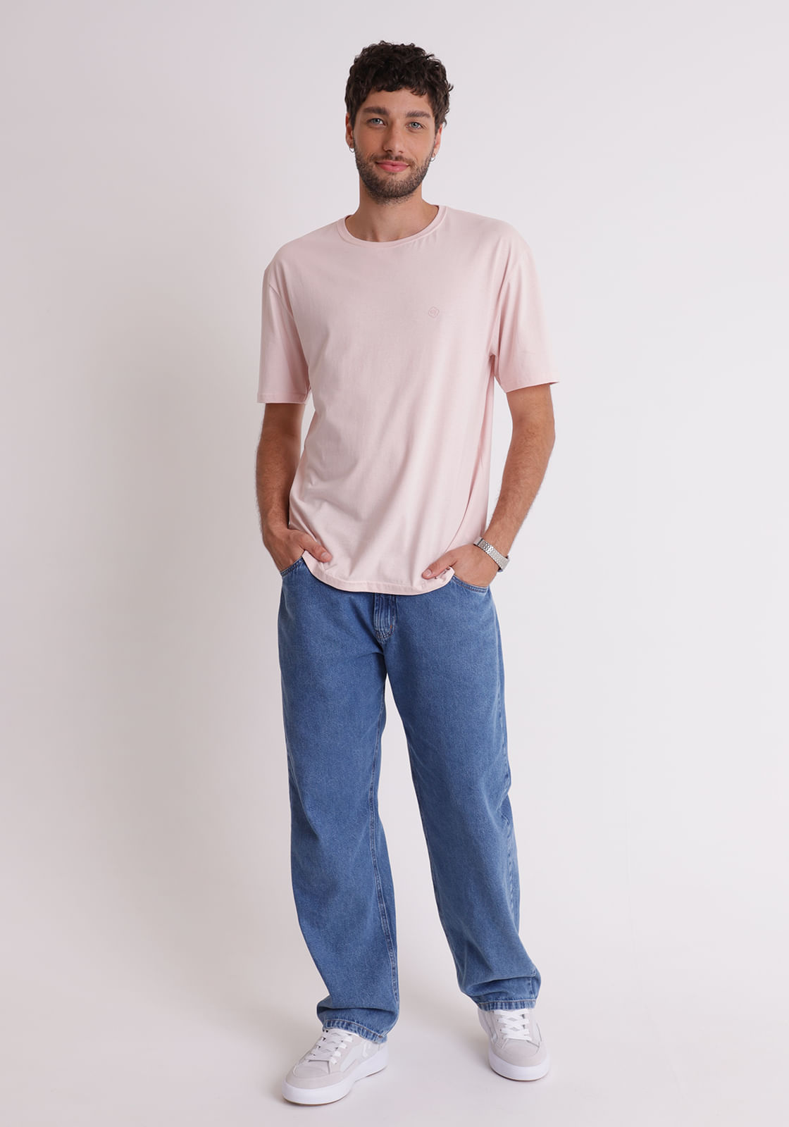 Camiseta básica gola redonda rosa lótus