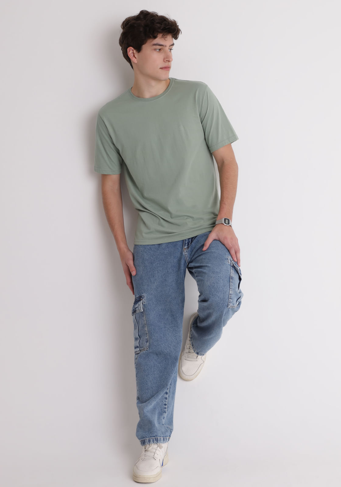 Camiseta básica com gola redonda na cor verde claro. Produzida em meia malha penteada 100% algodão, com ribana de decote com elastano. A modelagem original fit proporciona mais conforto ao corpo, além de ser super versátil e combinar com diversas peças e estilos. Seu visual traz a cor verde de tendência com logomarca em mesmo tom da peça para um look bem básico, alegre e despojado. As camisetas básicas são peças-chave para combinar com tudo.