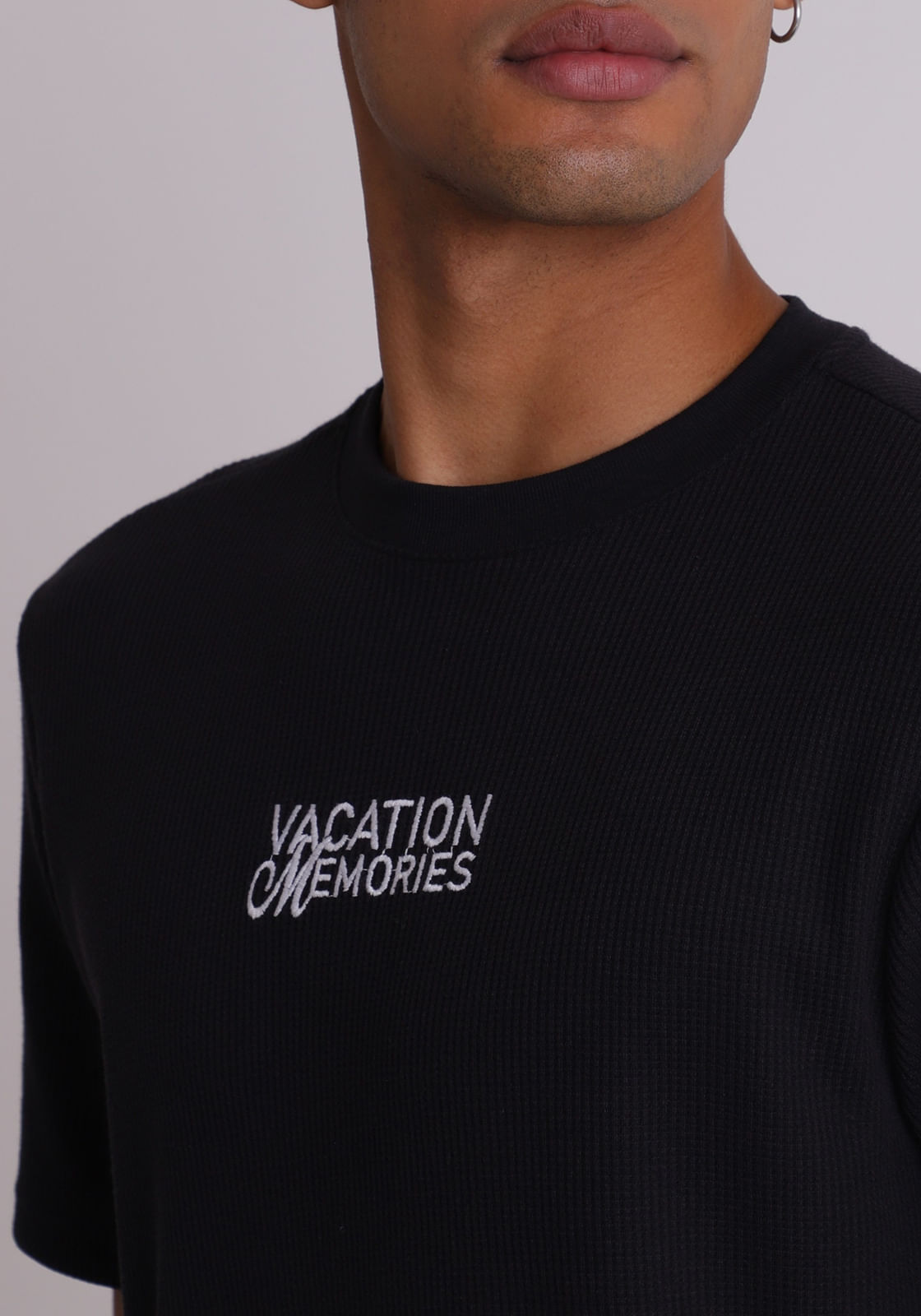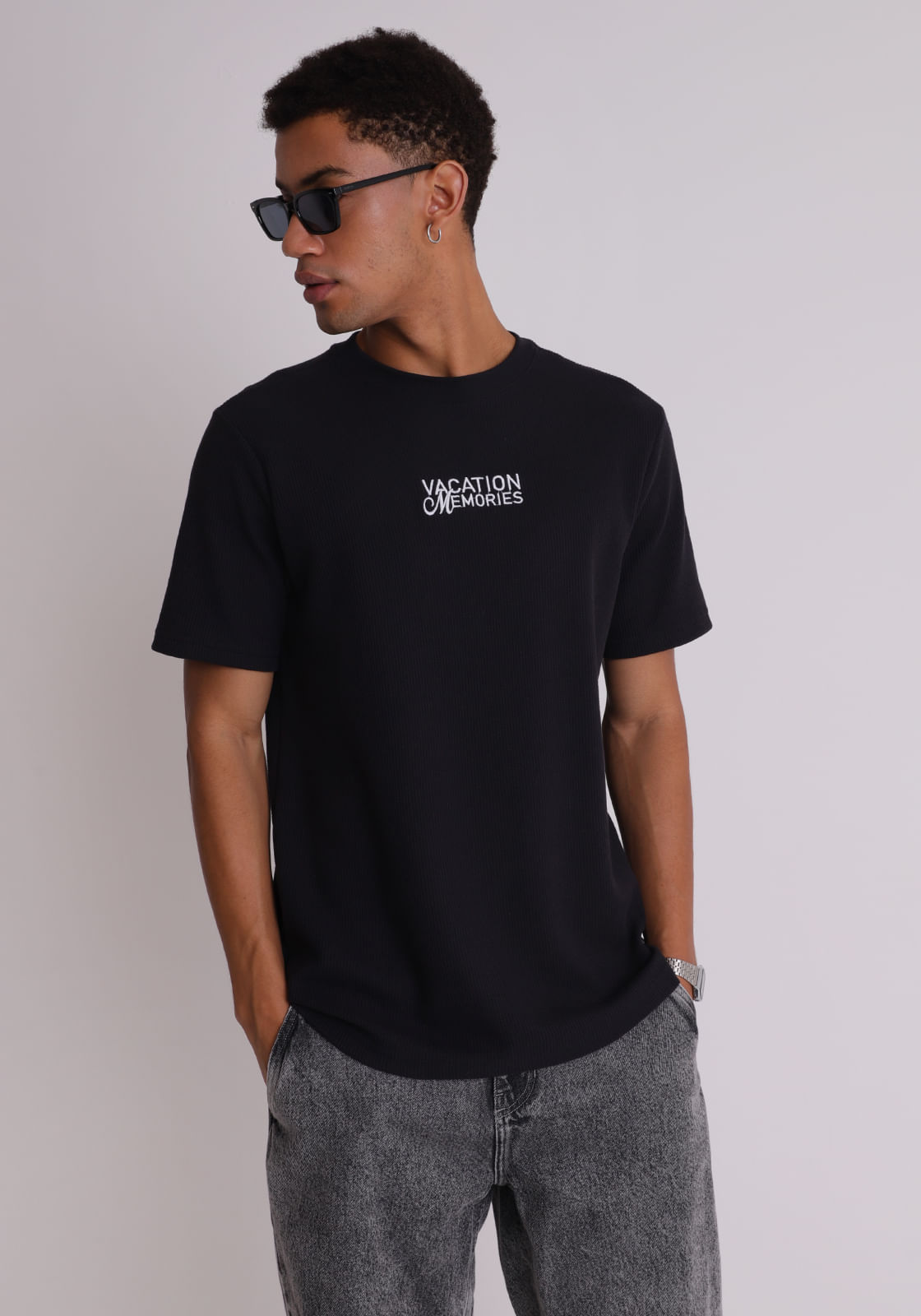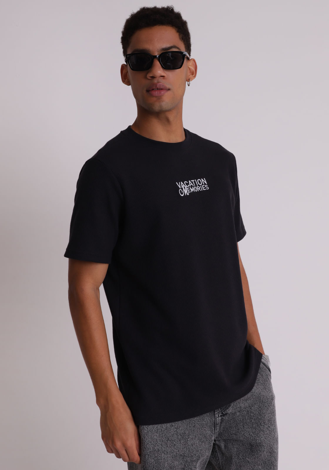 Camiseta texturizada estampa vacation memories